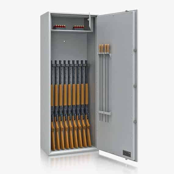 Seria Freiburg - szafa do przechowywania broni długiej, z perforacją na tylnej ścianie pozwalająca na zmianę umiejscowienia uchwytów na broń.