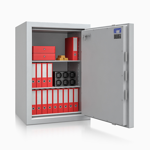 Sejf posiada certyfikat klasy V odporności na włamanie. To poziom stosowany w instytucjach finansowych, bankach oraz firmach o podwyższonym ryzyku. Konstrukcja została zaprojektowana tak, aby skutecznie opierać się próbom wiercenia, cięcia, wyważania oraz innym formom ataku.