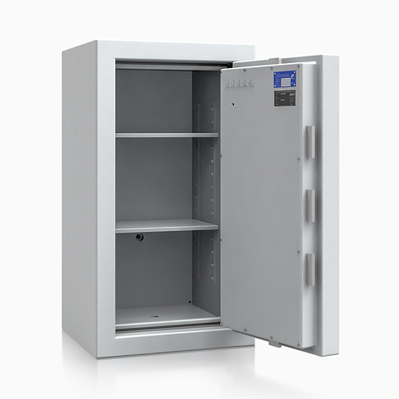 Sejf posiada certyfikat klasy V odporności na włamanie. To poziom stosowany w instytucjach finansowych, bankach oraz firmach o podwyższonym ryzyku. Konstrukcja została zaprojektowana tak, aby skutecznie opierać się próbom wiercenia, cięcia, wyważania oraz innym formom ataku.