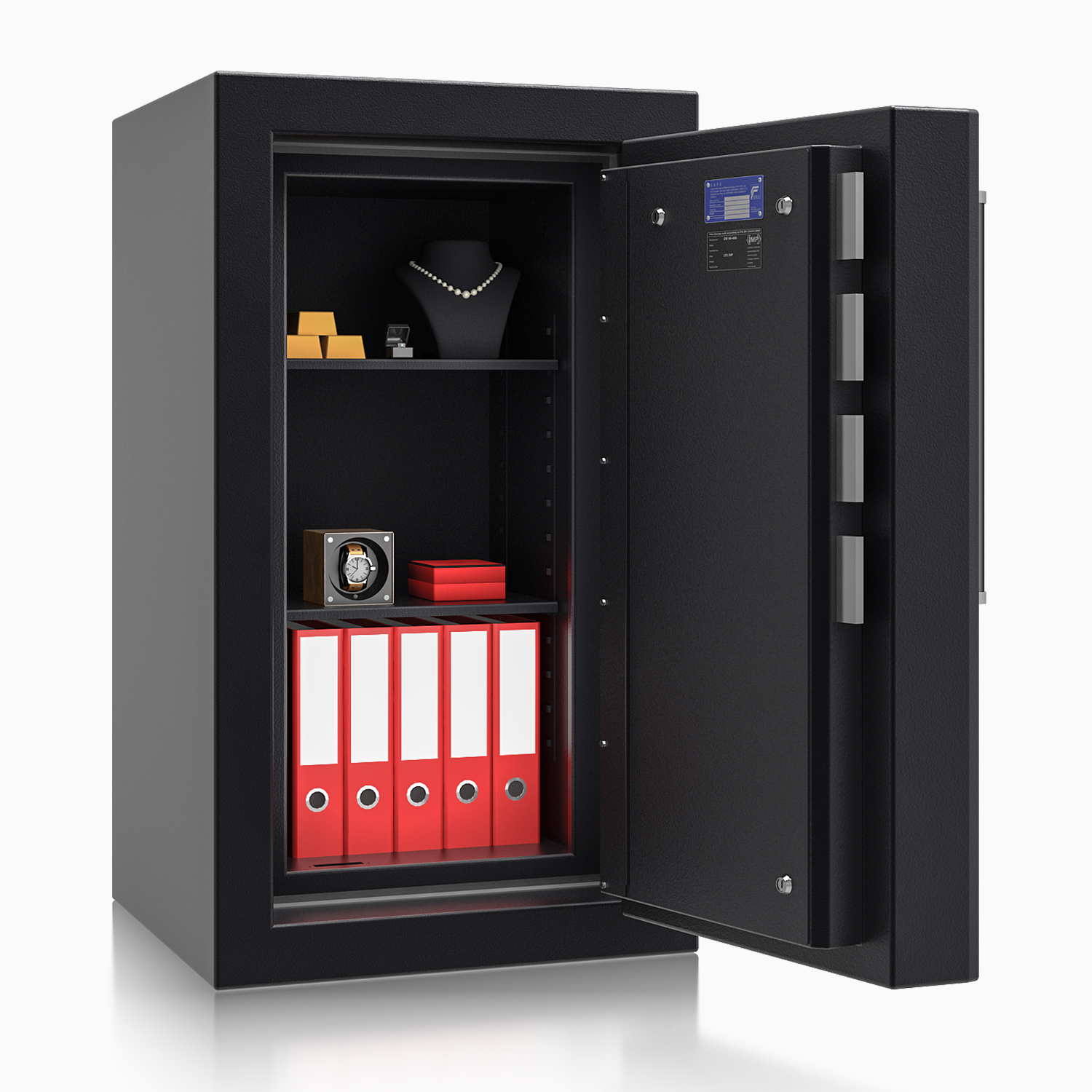 Dzięki certyfikatowi LFS 30, sejf zapewnia 30 minut ochrony przed ogniem w temperaturze sięgającej 840°C. Idealnie sprawdzi się do przechowywania: