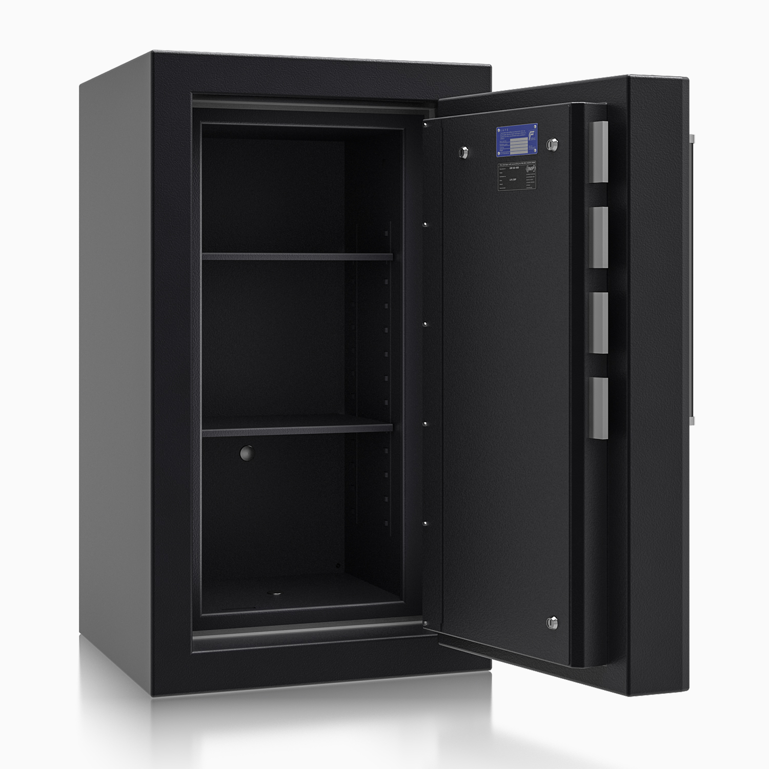 STRONGHOLD VI to zaawansowany technologicznie sejf antywłamaniowy klasy VI, zaprojektowany do ochrony mienia o najwyższej wartości. Sejf posiada certyfikat ECB•S zgodny z normą EN 1143-1 oraz spełnia wymagania odporności ogniowej LFS 30 (EN 15659), dzięki czemu skutecznie chroni zawartość zarówno przed włamaniem, jak i pożarem.