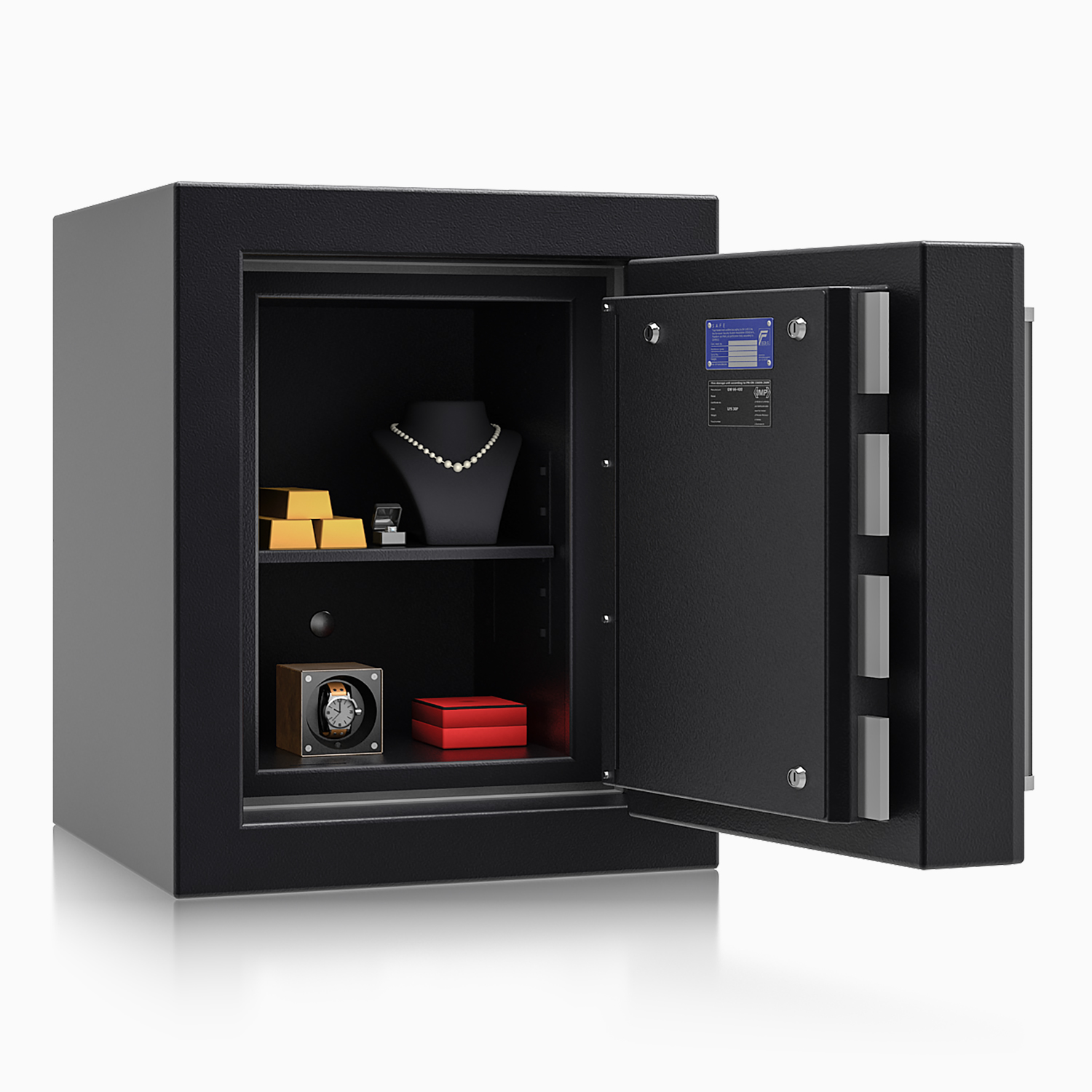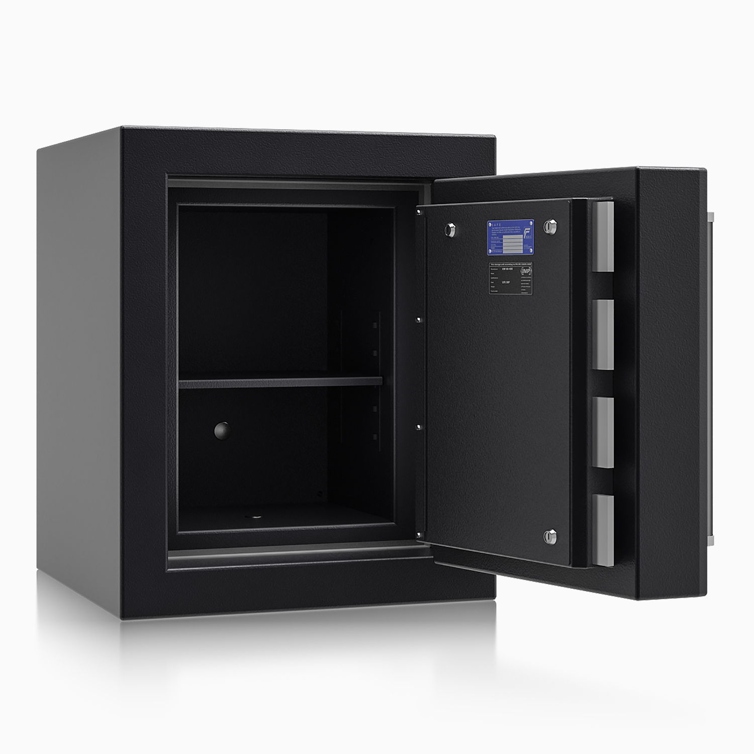 STRONGHOLD VI to zaawansowany technologicznie sejf antywłamaniowy klasy VI, zaprojektowany do ochrony mienia o najwyższej wartości. Sejf posiada certyfikat ECB•S zgodny z normą EN 1143-1 oraz spełnia wymagania odporności ogniowej LFS 30 (EN 15659), dzięki czemu skutecznie chroni zawartość zarówno przed włamaniem, jak i pożarem.