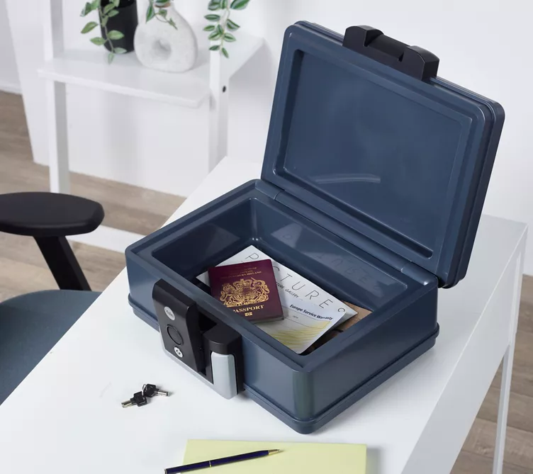 Kompaktowe wymiary oraz pojemność 5 litrów sprawiają, że model ten doskonale sprawdzi się do przechowywania dokumentów w formacie B5, nośników pamięci oraz innych drobnych przedmiotów wymagających ochrony.