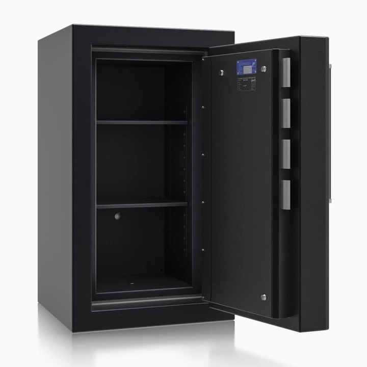 Sejf STRONGHOLD VI to profesjonalny sejf antywłamaniowy klasy VI , certyfikowany zgodnie z normą EN 1143-1 (ECB•S) oraz wyposażony w ochronę przeciwpożarową LFS 30 . Zapewnia najwyższy poziom bezpieczeństwa dla dokumentów, gotówki, biżuterii, nośników danych i broni. Solidna wielościankowa konstrukcja, czterostronne ryglowanie oraz możliwość konfiguracji zamków sprawiają, że jest to sejf klasy premium dla najbardziej wymagających użytkowników.