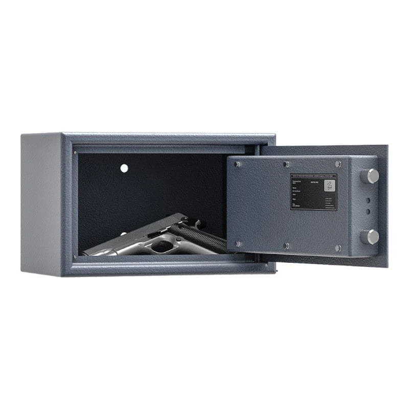 Solidność i funkcjonalność w jednym. Sejfy meblowe z certyfikatem odporności na włamanie, dostosowane do przechowywania wartościowych przedmiotów i broni krótkiej. Wykończenie w kolorach RAL 7035 i RAL 7024. Idealne dla tych, którzy szukają niezawodności w rozsądnej cenie.