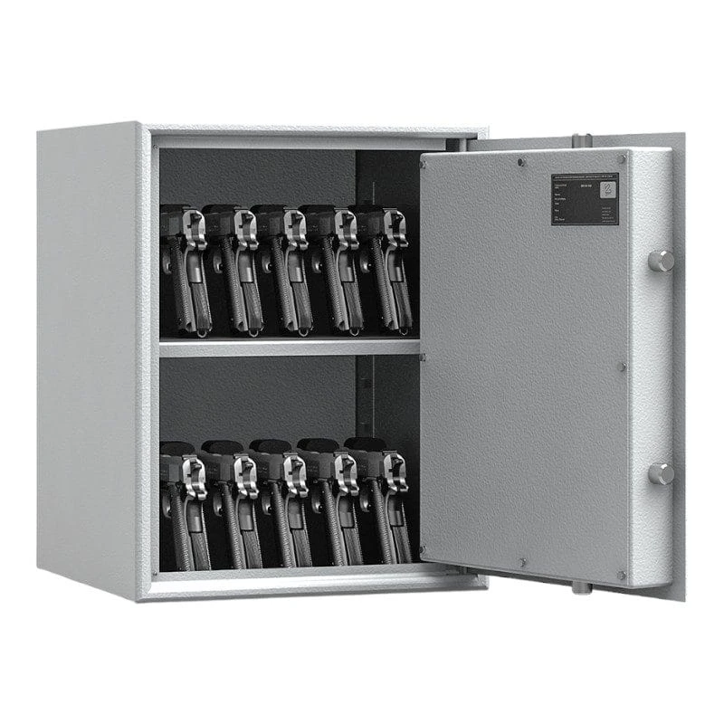 Solidność i funkcjonalność w jednym. Sejfy meblowe z certyfikatem odporności na włamanie, dostosowane do przechowywania wartościowych przedmiotów i broni krótkiej. Wykończenie w kolorach RAL 7035 i RAL 7024. Idealne dla tych, którzy szukają niezawodności w rozsądnej cenie.