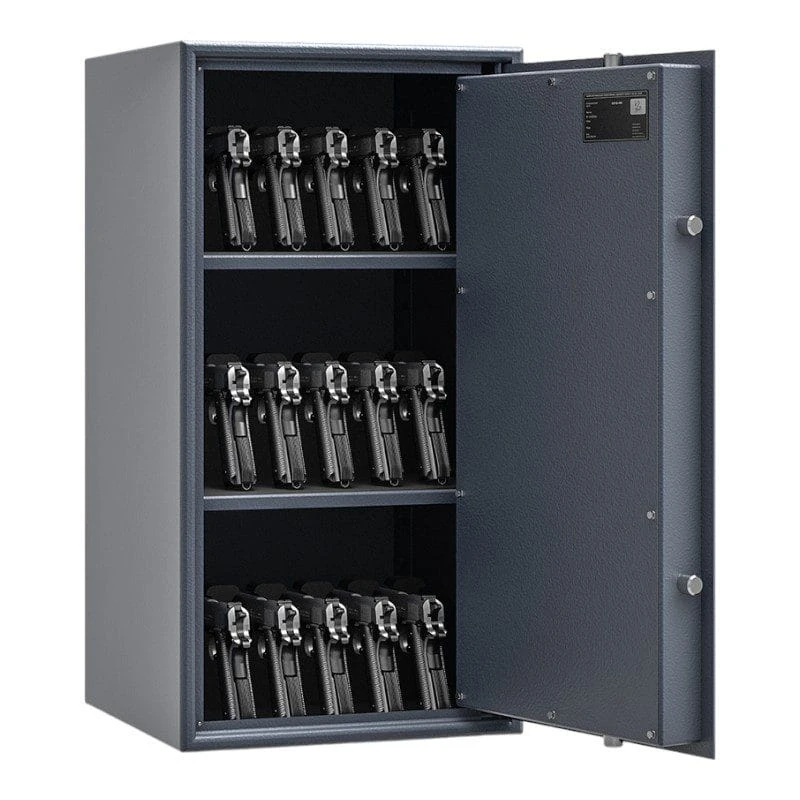 Solidność i funkcjonalność w jednym. Sejfy meblowe z certyfikatem odporności na włamanie, dostosowane do przechowywania wartościowych przedmiotów i broni krótkiej. Wykończenie w kolorach RAL 7035 i RAL 7024. Idealne dla tych, którzy szukają niezawodności w rozsądnej cenie.
