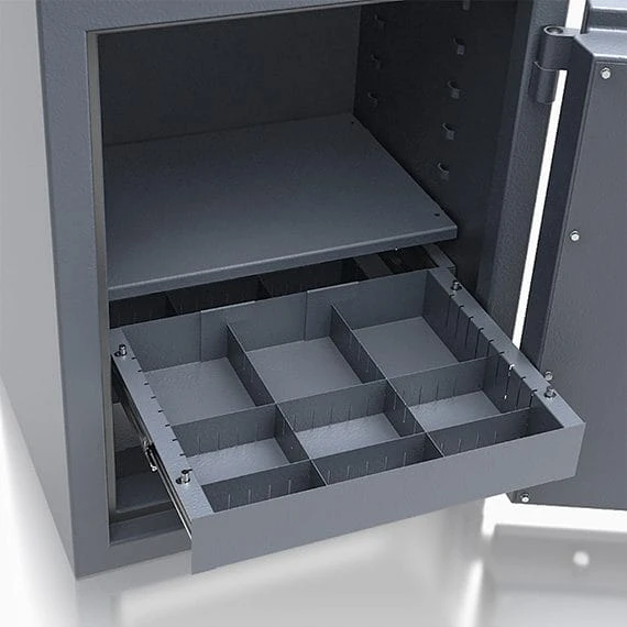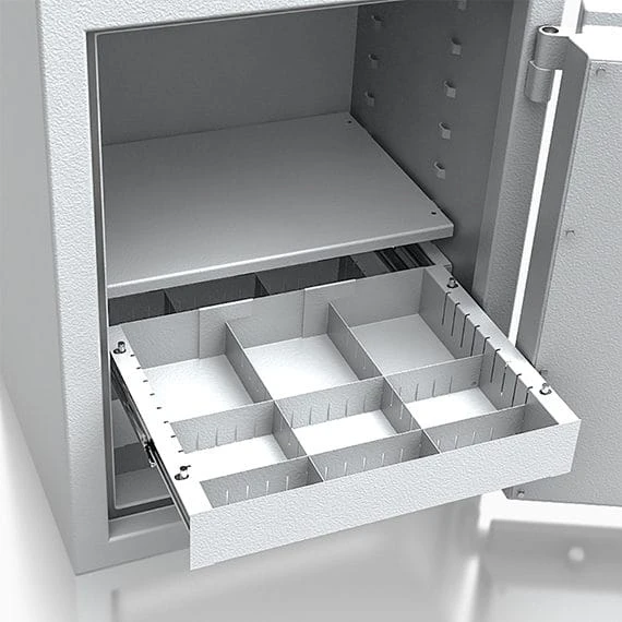 Ale Safe4BTM to nie tylko ochrona. To również innowacyjność i funkcjonalność, które sprawią, że korzystanie z sejfu stanie się łatwe i komfortowe. Szuflady na szynach teleskopowych umożliwiają sprawną organizację przestrzeni, a przenośna konstrukcja szuflady daje Ci elastyczność, jakiej potrzebujesz. Dodatkowo, przestawna półka pozwoli Ci dostosować sejf do przechowywania różnych przedmiotów.