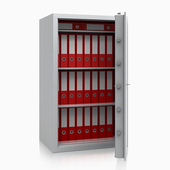 Zamek: sejf zamykany zamkiem kluczowym VdS-Klasa I/IMP-Klasa A (standardowo z dwoma kluczami o długości 95 mm)