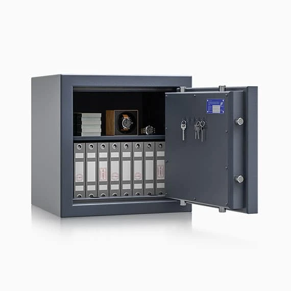 Sejf Stronghold III – klasa III EN 1143-1 to certyfikowany sejf antywłamaniowy i ognioodporny LFS 30 wg EN 15659 (ECB•S). Zapewnia 30 minut ochrony dokumentów papierowych przed ogniem oraz wysoki poziom zabezpieczenia przed włamaniem. Idealny do domu, biura i firm. w biurze oraz w domu. Solidna konstrukcja, czterostronne ryglowanie i zamek kluczowy VdS Klasa I zapewniają wysoki poziom bezpieczeństwa.