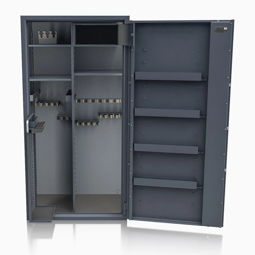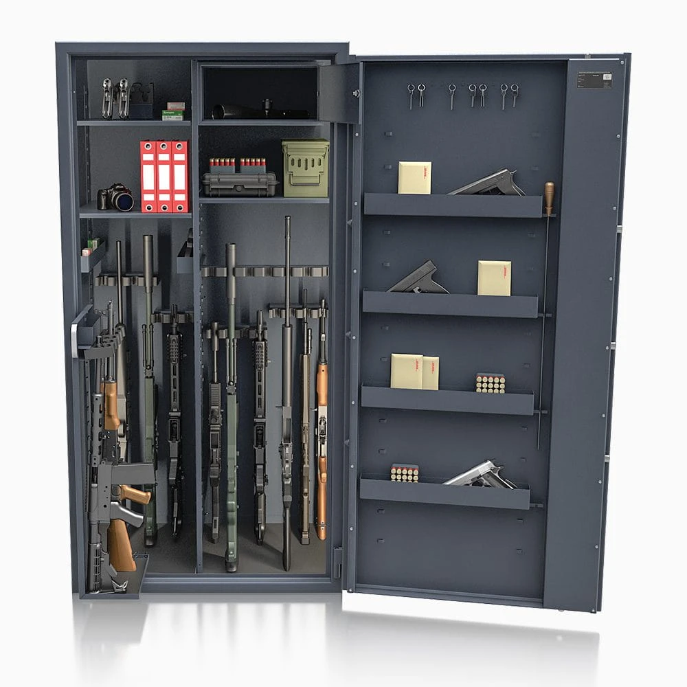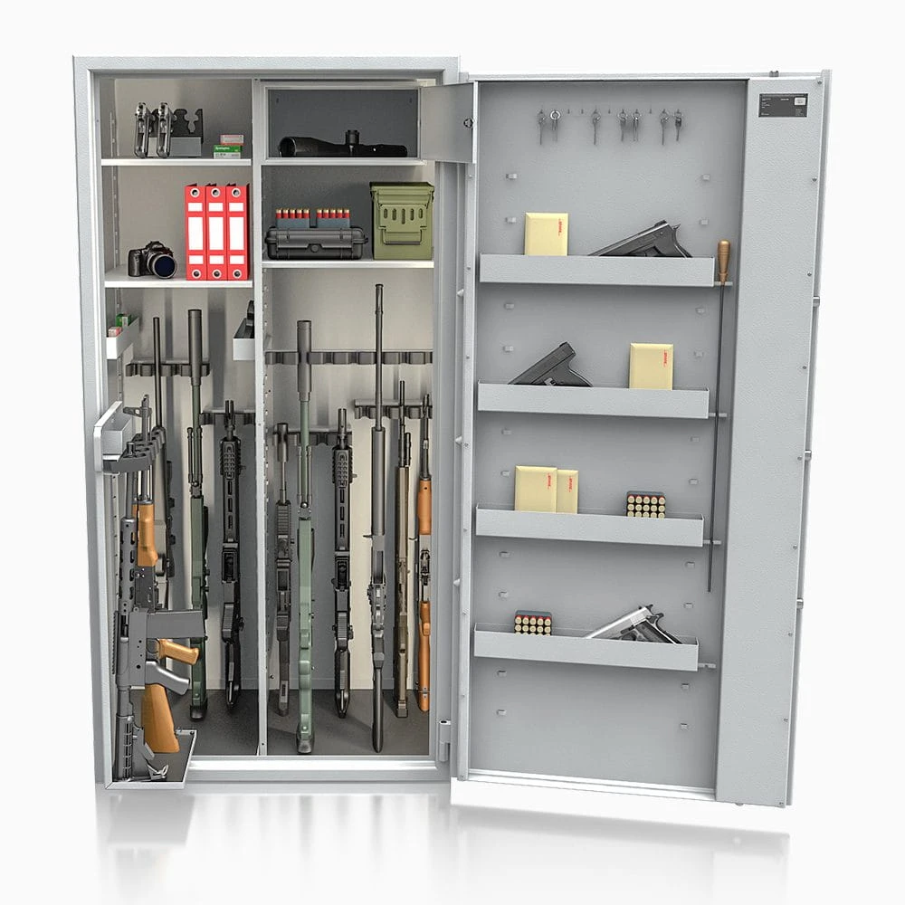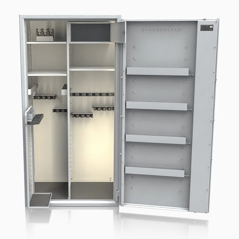 Szafa na broń Siegen Super Kombi w klasie bezpieczeństwa S1 (EN 14450) to certyfikowany sejf o pojemności 726 litrów , mieszczący aż 30 jednostek broni długiej . Wyposażony w 3 półki, system cargo, przestawne uchwyty oraz oświetlenie LED. Zgodny z rozporządzeniem MSWiA.