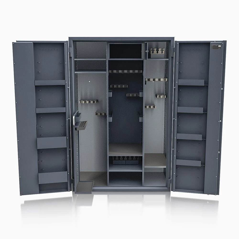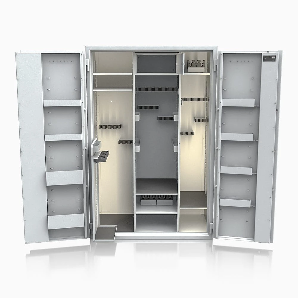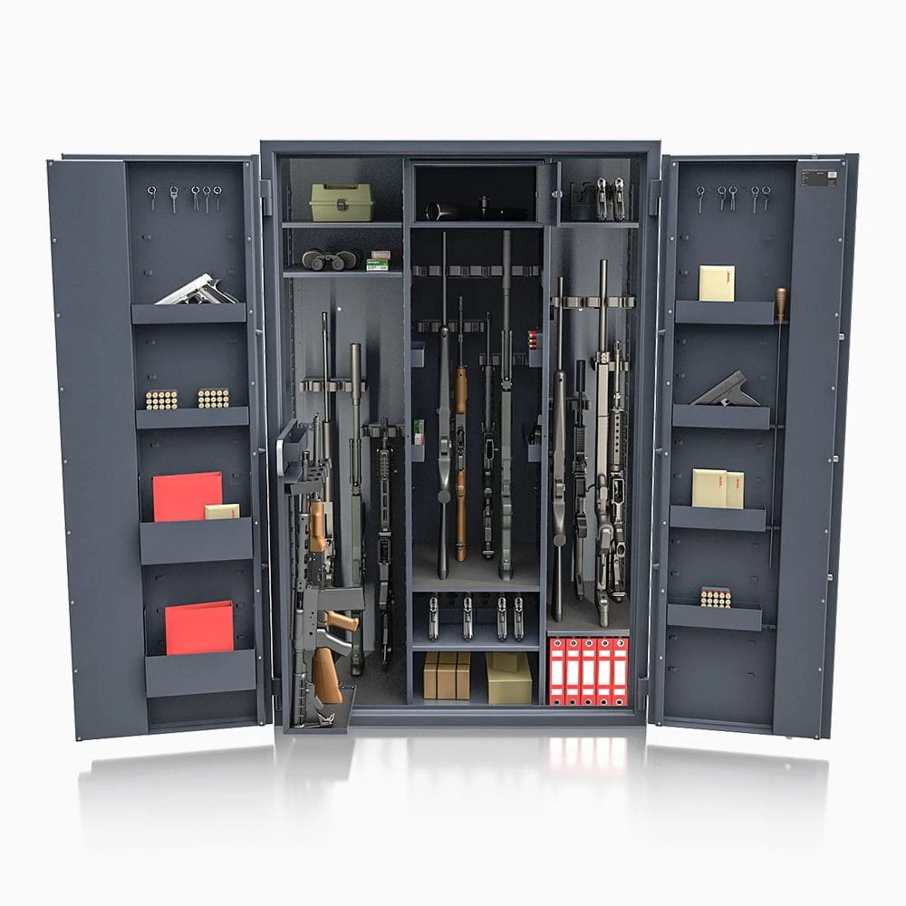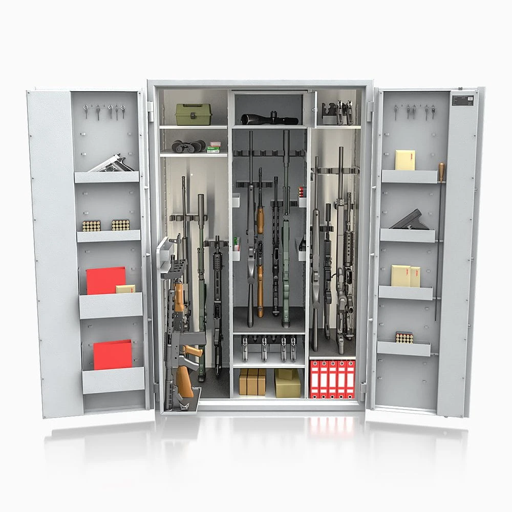 To profesjonalna szafa na broń długą klasy S1, zaprojektowana do bezpiecznego przechowywania broni myśliwskiej, sportowej oraz kolekcjonerskiej.