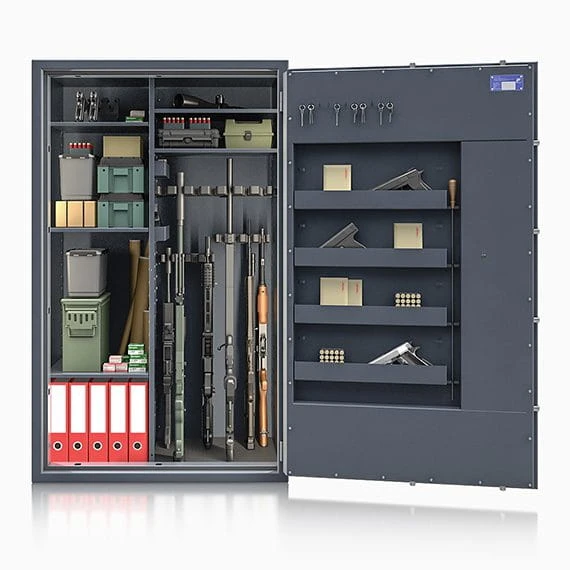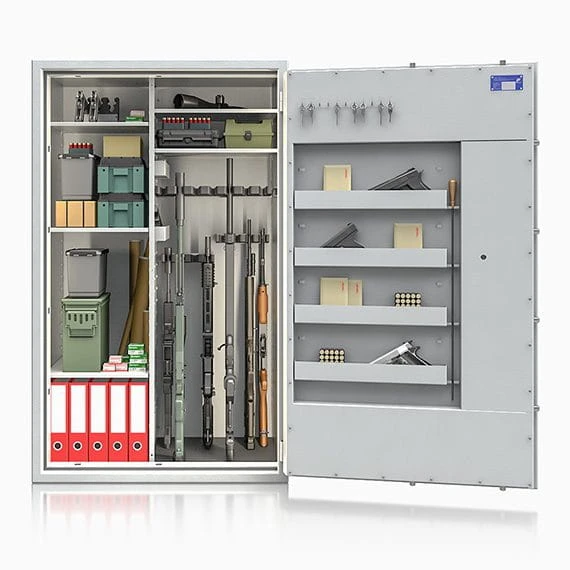 St. Gallen WF Super Kombi - Twoje bezpieczeństwo i pasja spotykają się w jednym miejscu. Szafy z tej serii to wyjątkowe połączenie bezpieczeństwa i funkcjonalności. Dostosowuj przestrzeń wewnętrzną, przechowuj broń i akcesoria w zorganizowany sposób, i ciesz się spokojem, wiedząc, że Twój sprzęt jest zabezpieczony na najwyższym poziomie..