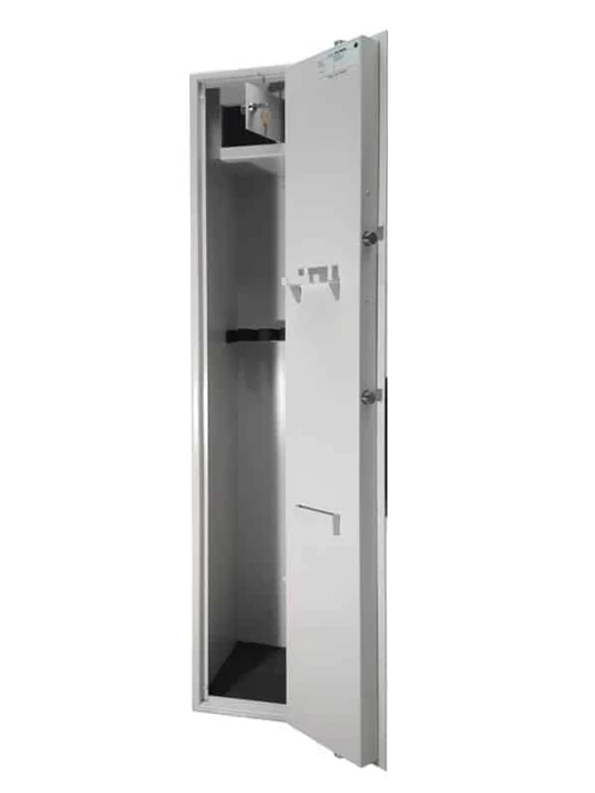 Szafa na broń S1 ARSENAŁ 1433 na 5 sztuk broni długiej zgodna z normą PN-EN 14450 . Certyfikowana klasa odporności S1, atestowany zamek kluczowy klasy B, wewnętrzna skrytka oraz możliwość kotwienia do podłoża i ściany. Bezpieczne i legalne przechowywanie broni w domu.